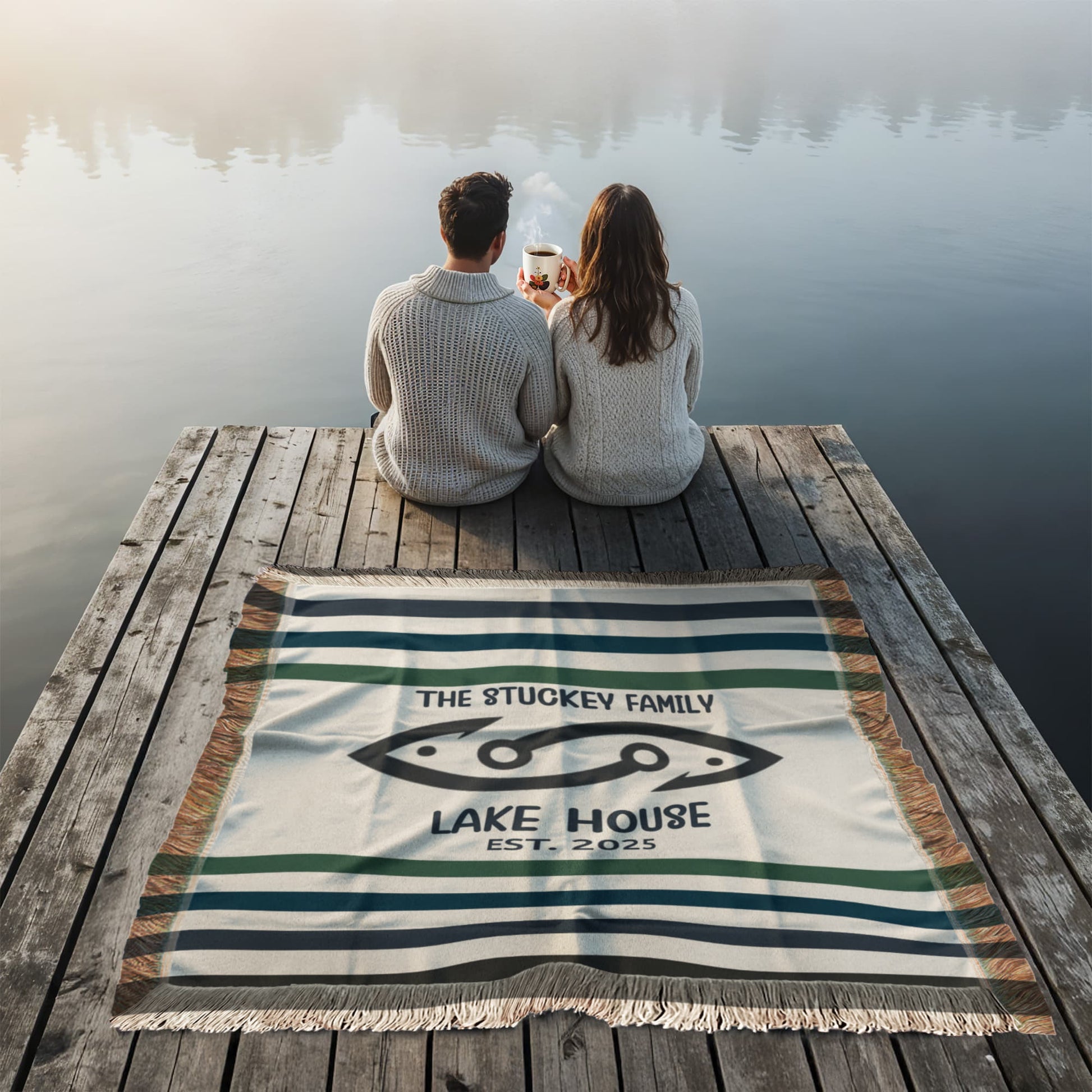 Personalized Lake House Decor, Custom Family Name Blanket, lake house sign tapestry, fishing, sailing woven throw, Housewarming Keepsake
